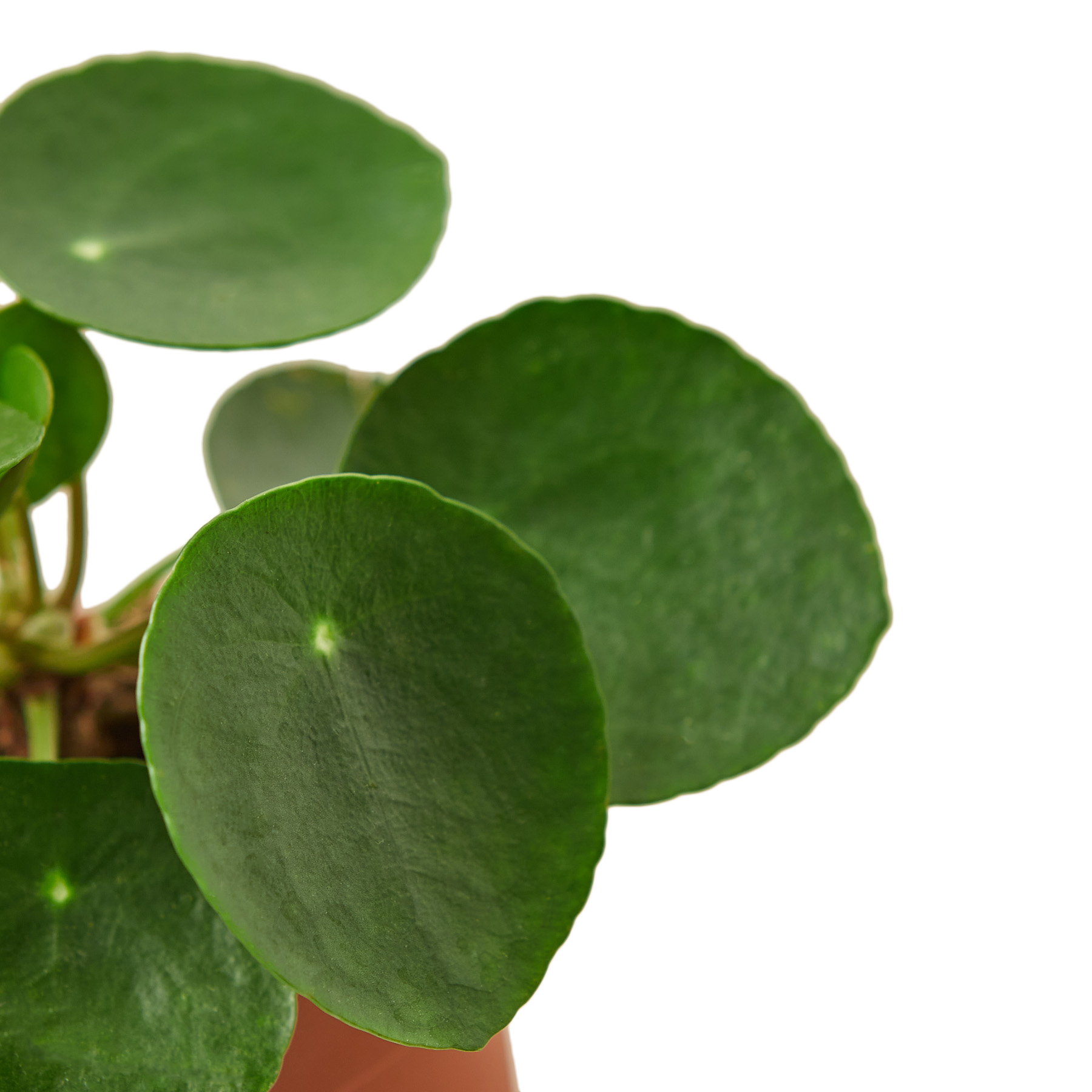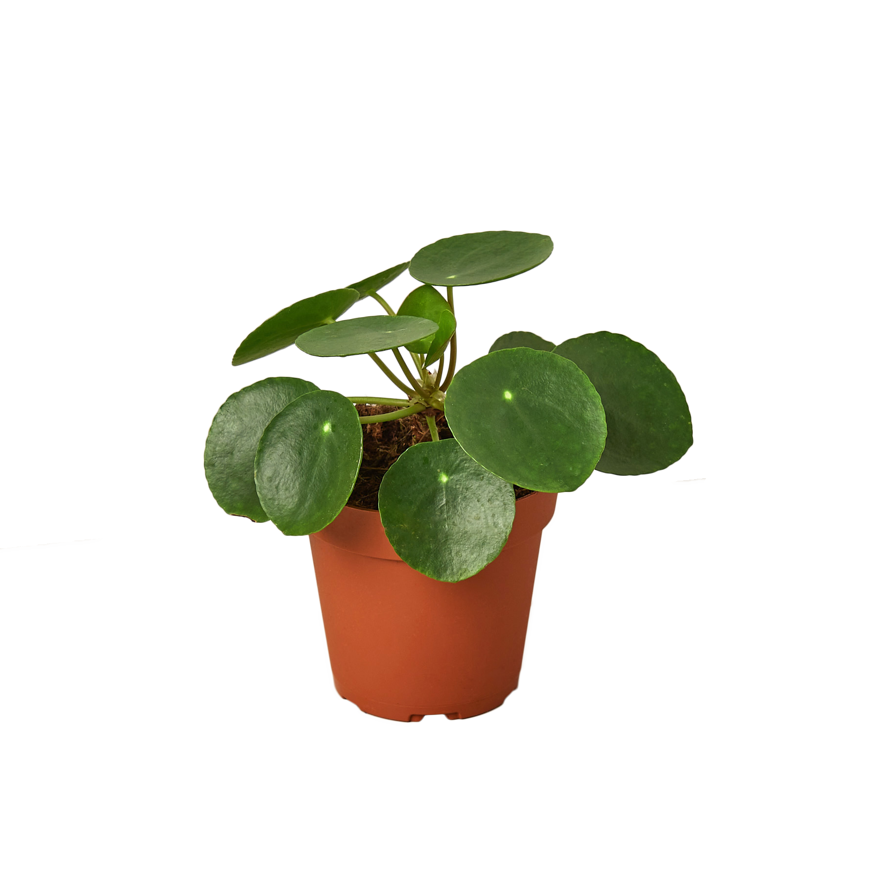 The 4-inch Chinese money plant (Pilea peperomioides) is a charming addition to any space with its distinctive coin-shaped leaves. Easy to care for and pet-safe, this perennial also helps purify the air around you. Known as the "friendship plant," it’s simple to propagate and share, making it a perfect gift. Thrive with proper light and watch it flourish, doubling in size within a year. Enhance your home or office with this stylish, low-maintenance green companion.