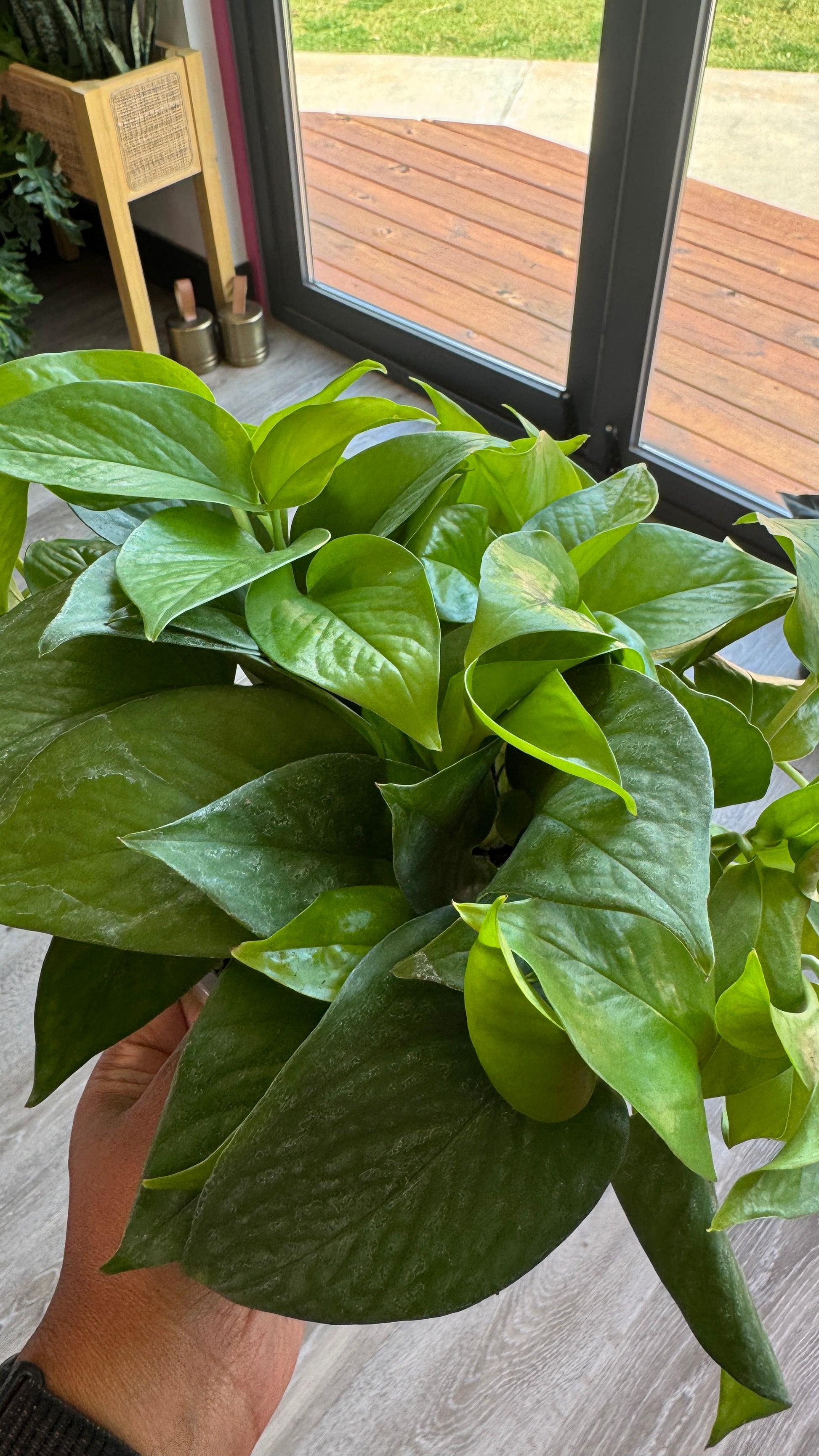 Pothos Jade is an easy-care trailing houseplant with lush, heart-shaped leaves in a rich green hue. Its graceful vines make it ideal for hanging planters or shelves, adding natural beauty to any space. Adaptable to various light conditions—from low to bright indirect light—it thrives with minimal effort. Simply let the top half of the soil dry out between waterings and feed monthly during the growing season to keep it vibrant. Each plant is unique, bringing a touch of living charm to your home.