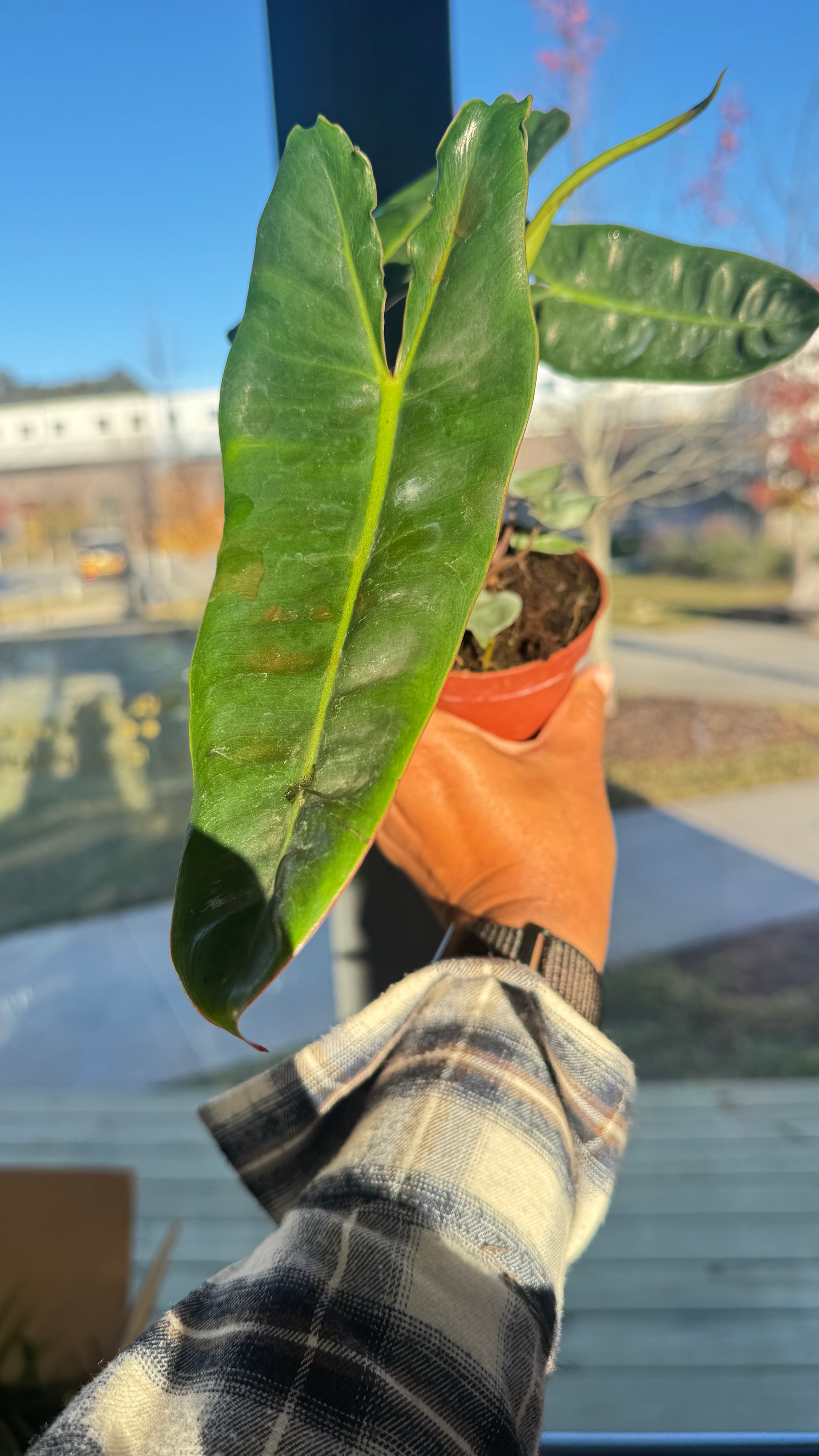 Description: Philodendron billietiae is a very popular and highly sought after climbing Philodendron species. This plant is known for its unique orange petioles and long green foliage.